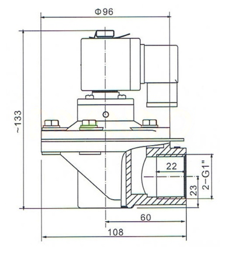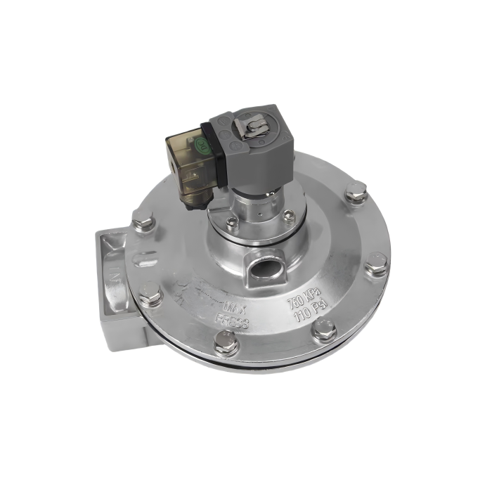 Elektromagnetický pulzný membránový ventil pozostáva z dvoch plynových komôr. Keď je pripojený stlačený vzduch, prúd vzduchu vstupuje cez otvor do zadnej plynovej komory.