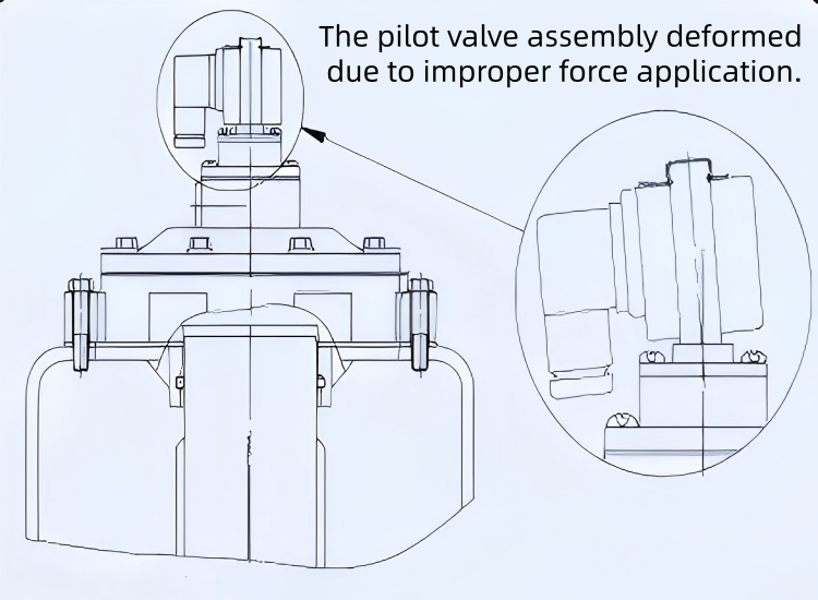 Po inštalácii sú zváracie operácie na vzduchových nádržiach, pripojených prírubách alebo vyfukovacích rúrach zakázané, aby sa predišlo rozstreku pri zváraní alebo poškodeniu membrán vysokou teplotou. Počas prepravy alebo inštalácie manipulujte opatrne, aby ste predišli poškodeniu riadiacej zostavy solenoidového ventilu nárazom, čo by mohlo zdeformovať objímku cievky, spôsobiť zaseknutie pohyblivého drieku a zabrániť činnosti ventilu.